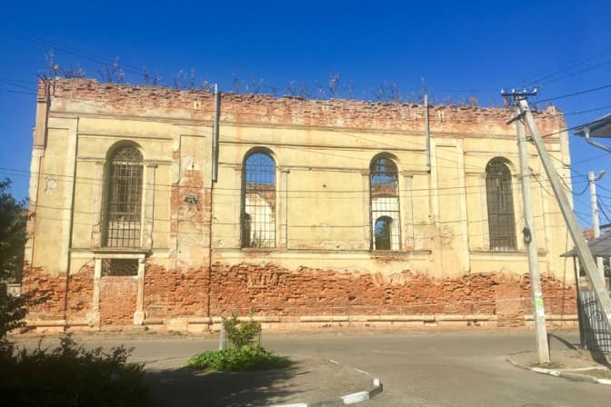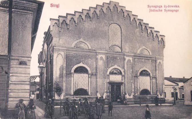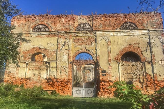 Руїни Великої синагоги, збудованої у 1817 році, стоять на вулиці Міхновського, 5. Гратки воріт виконані у формі менори, а знизу прикрашені Маген Давидами.