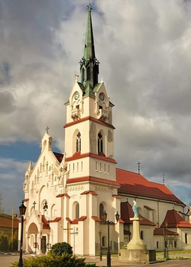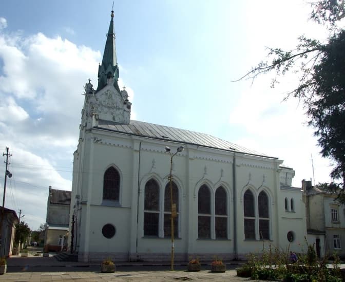 Парафіяльний костел Різдва Пресвятої Богородиці збудували у 1425 році, він пережив чимало пожеж. Перша, котра знищила костел і півміста, вибухнула у 1604 році. Завдяки багатим пожертвам міщан костел відбудували вже у 1640 році. У листопаді 1827 року сталася друга пожежа, котра з надзвичайною швидкістю огорнула значну частину міста разом з костелом і плебанею. Спалахнув дах на вежі і на костелі, дзвони сплавились, а найбільший зірвався і розбився. Середина костелу вціліла завдяки міцному даху. Храм відреставрували зусиллями пароха о. Франциска Рогачевського. Найбільша і найтрагічніша пожежа відбулась 17 квітня 1886 року. Від жару і вогню впала вежа костелу, цілий інтер'єр був знищений, вціліла фігура розіп'ятого Христа, розташована у бічному вівтарі. Згорів також образ Різдва Божої Матері.