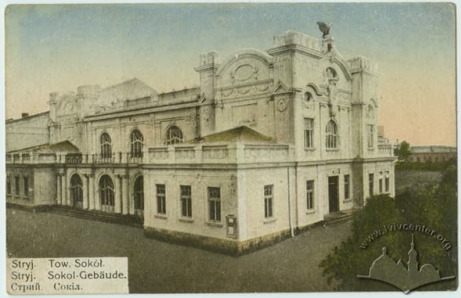 Першим гаслом було «У здоровому тілі — здоровий дух». У 1906 році завершили будівництво. Будинок є яскравим зразком сецесії, має пишний декор як зовні, так і всередині. У 1923 році приміщення товариства «Сокіл» частково добудували. Сцену прикрашала картина — копія роботи Генріха Семирадського, виконаної для театру у Кракові. У 1950-их роках тут діяв Стрийський драматичний театр. Тепер це міський Будинок культури.