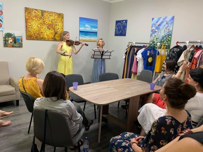 Зараз Катерина проводить тут консультації – вживу та онлайн, допомагає підібрати одяг за архетипом або під конкретну подію – виступ, вечір тощо. Також тут відбуваються різноманітні івенти: лекції, майстер-класи, ігри. А ще – виставка картин і навіть виступ скрипальки і флейтистки.