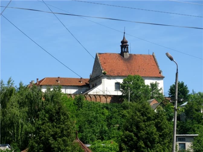 Костел розташований під пагорбом Сторожисько, звідки відкривається панорама на Бережани. Побудований у 1683 році на честь жителів Бережан, які брали участь у битві з турками під Віднем. До костелу пізніше прибудували келії, а у 1742 році його огородили кам’яними стінами. В архітектурі храму поєднані елементи бароко, готики і пізнього ренесансу, що свідчить про проведення в різний час відновлювальних робіт та перебудов. З радянських часів і до сьогодні на території монастиря розташовується виправна колонія для неповнолітніх, тому відкритого доступу до нього немає. Тільки по неділях можна потрапити на богослужіння церкви Пратулинських мучеників, якій передали храм у 2001 році.