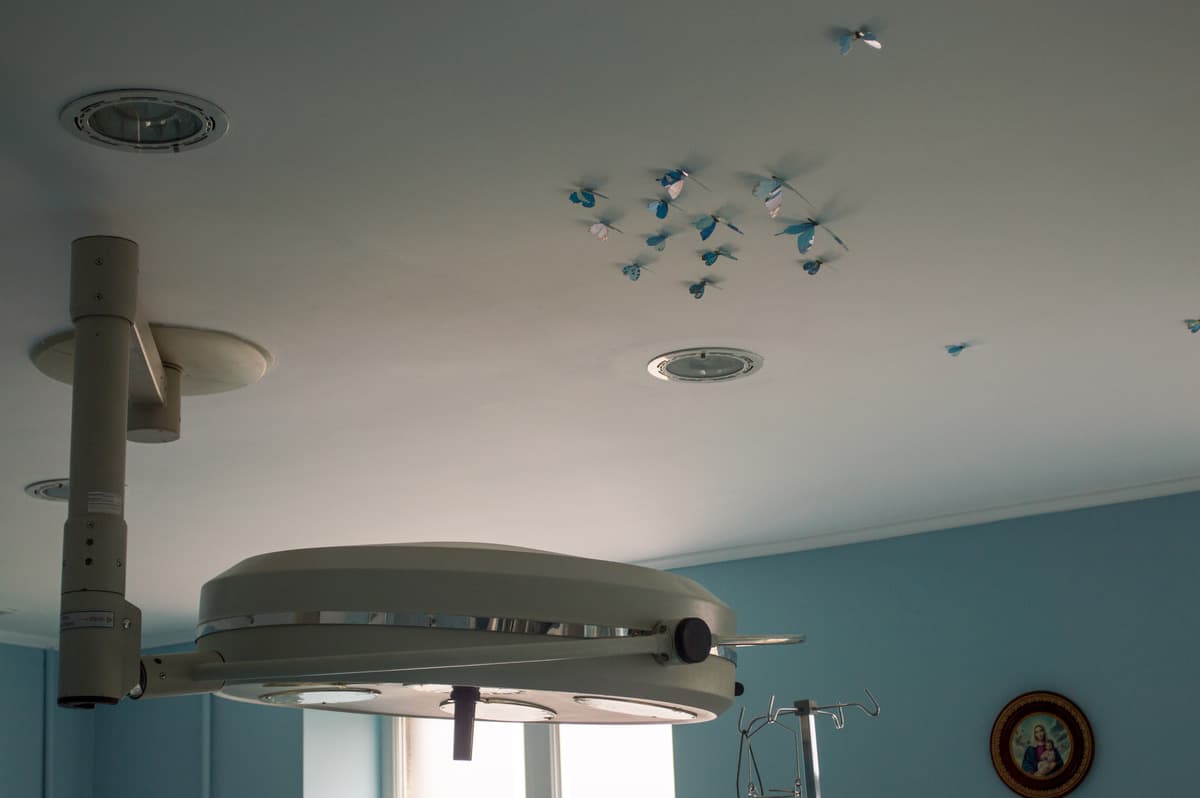 Далі піднімаємось ліфтом у пологове відділення, що розташоване на 4-му поверсі. Тут перебувають жінки, які є в групі ризику. За рогом від операційного блоку — диванчик, де родина може присісти, поки чекає на завершення операції.