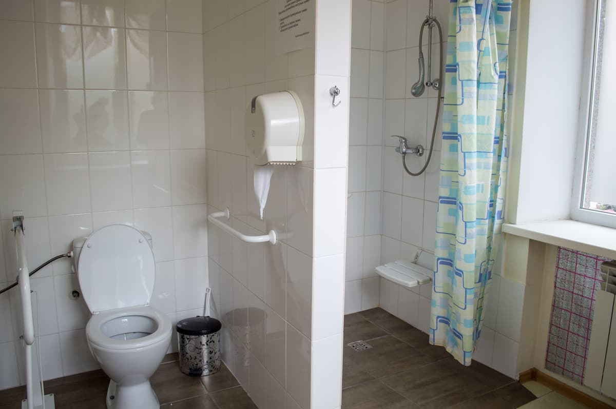 Також на першому поверсі є спеціальна палата для жінок із травмами хребта, які пересуваються на візку. За рік, каже Людмила Шекета, тут буває 8-9 жінок. Коли палата вільна, тут можуть перебувати інші жінки.