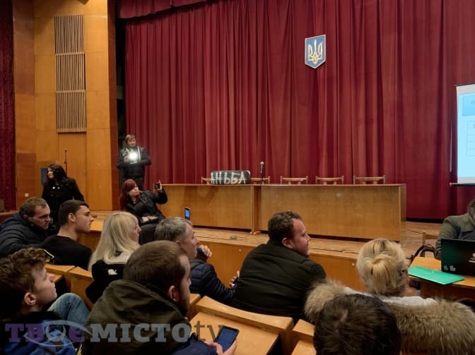 До початку слухань лишається хвилин 15. Зал ледве наповнений наполовину. Депутати львівської міськради Ігор Зінкевич, Ігор Телішевський та Сергій Івах групуються перед першим рядом. Із іншого кінця зали починає лунати знайома пісня російського шансону «А белый лебедь на пруду» – чоловіки старшого віку переглядають на смартфоні кліп україномовної версії хіта 90-х, сміються.