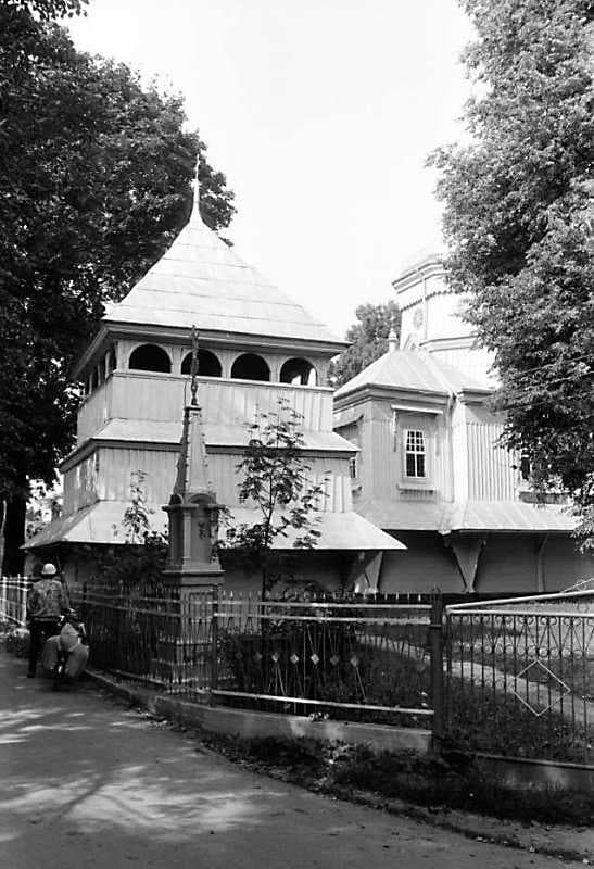 На захід від храму, біля огорожі, стоїть дерев'яна триярусна дзвіниця, що залишилася від оригінальної святині. Накрита наметовим дахом, стіни вертикально покриті дошками, пофарбованими на блакитно.