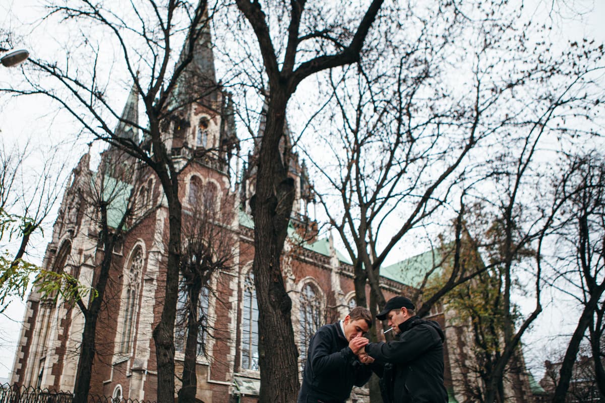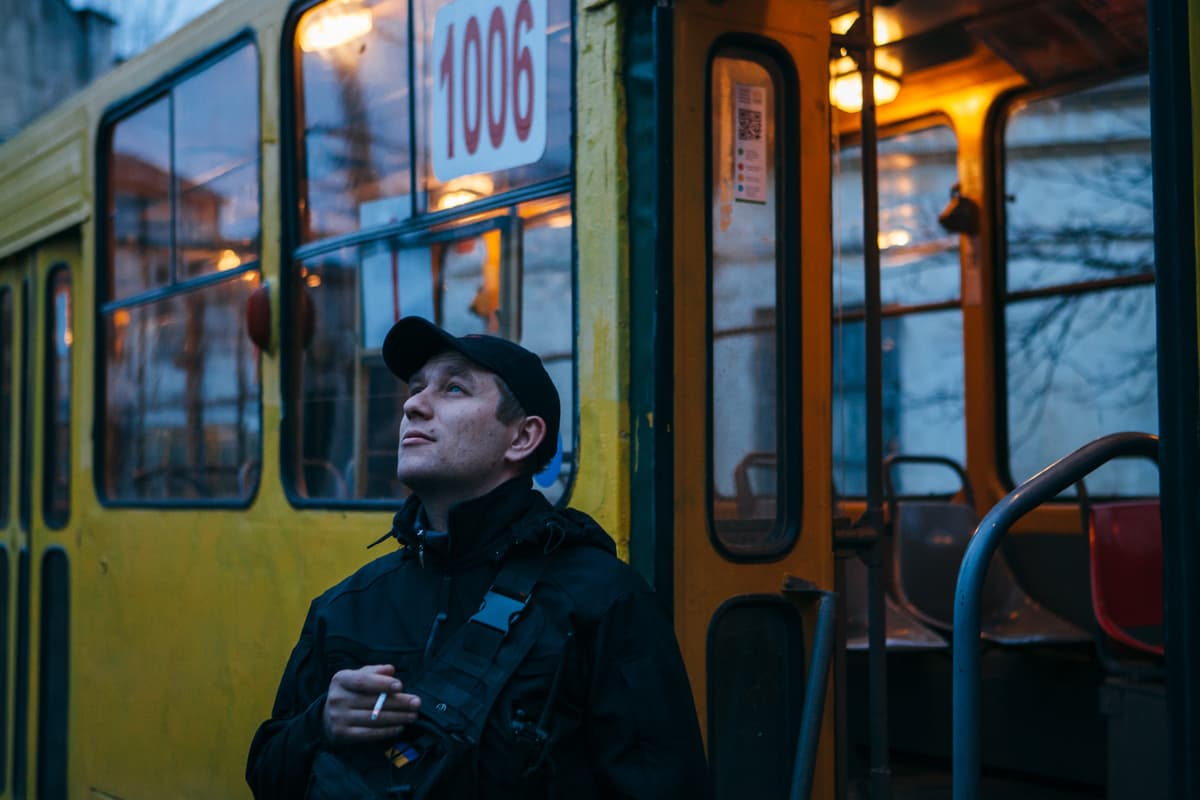 Мовчки виходимо з трамвая. Нікого не спіймали. Поки чекаємо наступного, інспектори намагаються прикурити цигарку на сильному вітрі. Вони втискають голову в плечі, холод пронизує до кісток, але Андрій раптом посміхається: