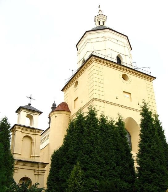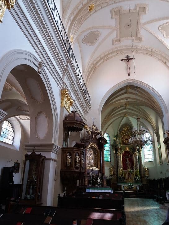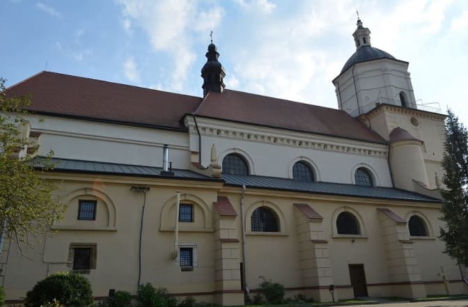Ця найвища та найстаріша будівля міста збудована на місці маленького дерев’яного костелика, який згорів у 1498 році після нападу татар. Її зведення почалося в середині XVI століття за проектом польського архітектора Юзефа Тарновчика. Будівельні роботи тривали довго, понад 30 років, а вже через 63 роки костел потерпів від величезної пожежі. У 1846 році костел знову горів. Після Другої світової костел діяв.