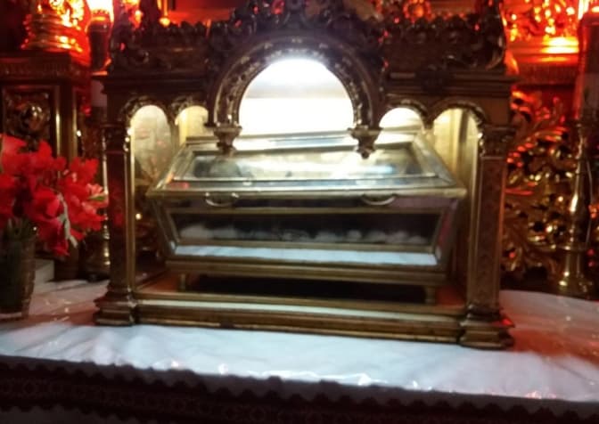 Ще однією популярною реліквією церкви є мощі святого Валентина – легендарного покровителя закоханих. Мощі – фрагмент черепа та декілька кісток – привезли до Самбора у 1759 році, доказом їх автентичності слугує документ від Папи Римського, що зберігається в Римі. Мощі зберігають у невеликому скляному саркофазі, у День закоханих та на Стрітення їх обносять навколо церкви і виставляють для поклоніння.