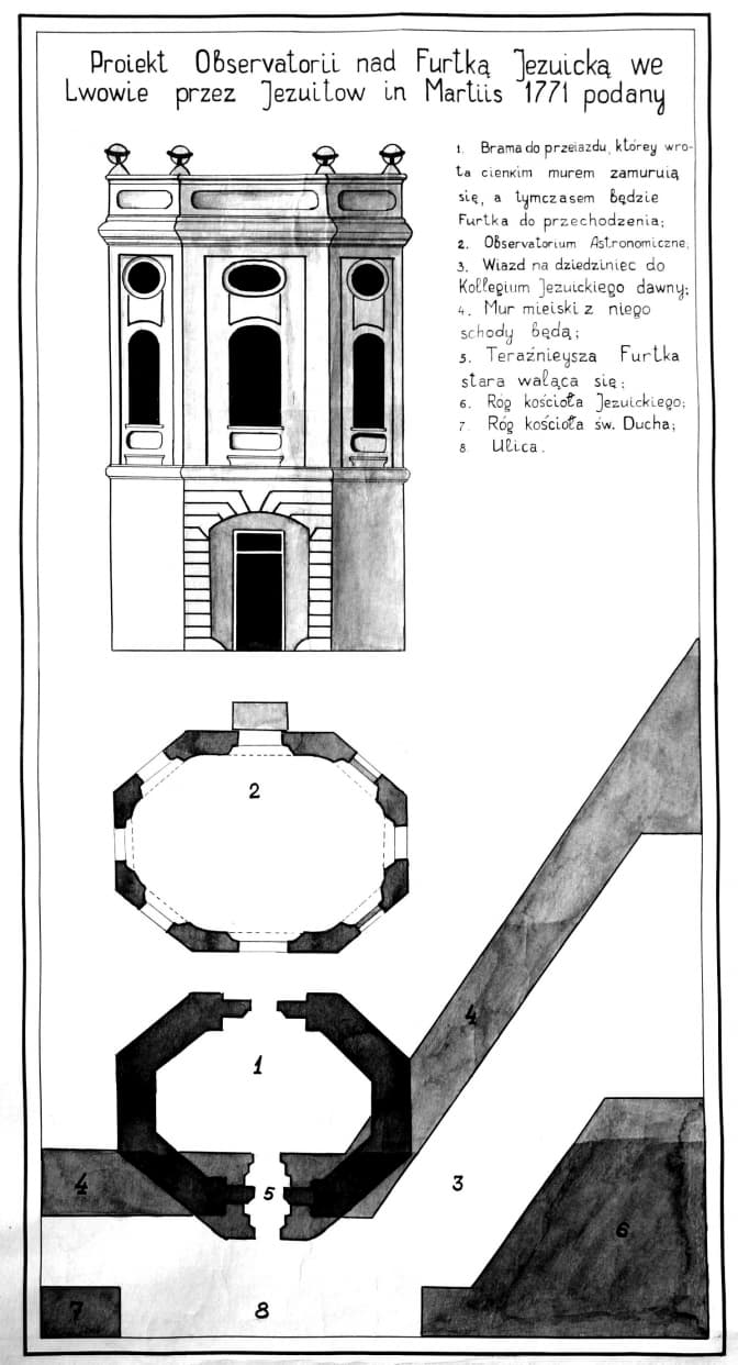 Міський магістрат на спорудження обсерваторії єзуїтам дав місяць. Як виглядала споруда можна побачити на відомому макеті Львова Януша Вітвіцького.