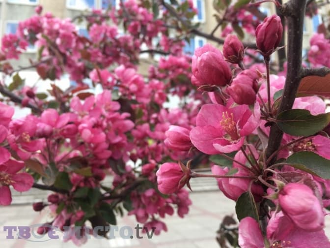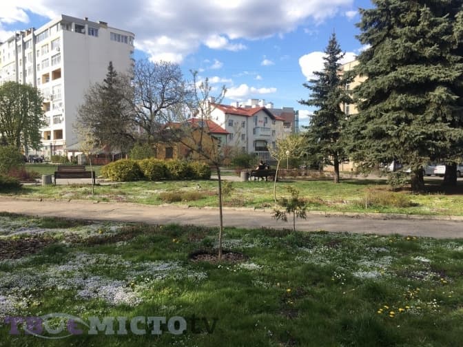 Частина дерев повідцвітали, частина ще не розпустилася, а біля кільця на Липинського маленьке деревце квітне темно-рожевимим. Воно стає тлом для кількох спонтанних фотосесій: дві пані підходять до нього, по черзі знімають маски та роблять фото одна одній, сміються, переміщують маски на лоба та роблять парне селфі. Весна та життя тривають.