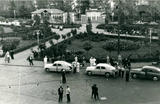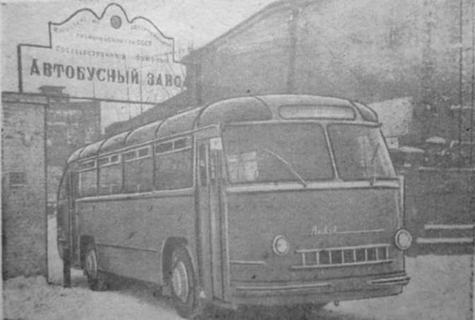 Перший автобус моделі ЛАЗ-695 виходить із воріт Львівського автобусного заводу, 1956 р.
