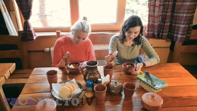 Для обіду теж є місцина на території. Тут подають традиційні страви, наприклад, бограч. Також багато закладів харчування є у центрі Славська.