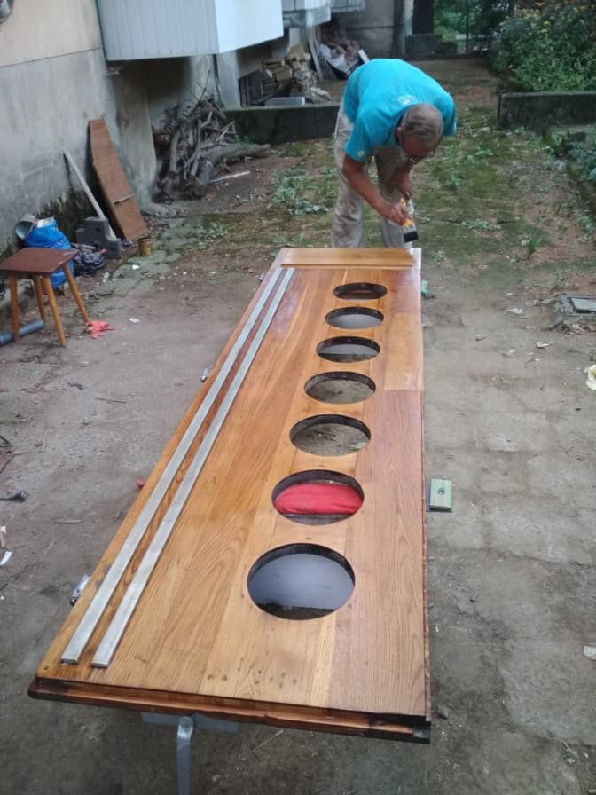 «Ми замовляли окремі деталі, кликали знайомих консультантів, реставраторів, тих, хто працює з деревом, цікавилися, чим краще покривати. Як виявилося, не лаком, а олією, щоби зберегти оригінальний колір дерева і його фактуру. А ще загалом радилися, як цю реставрацію краще втілити в життя і водночас наблизити браму до її первинного вигляду», – говорить він.