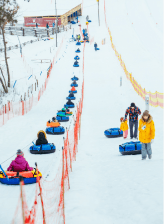 Сноутюбінг – це спуск з невеликого снігового схилу на надувних санках (тюбах) по підготовленій снігові доріжці, яка обмежена стінками, що задають траєкторію і напрямок руху. У «Їжак парку» працює 15 спусків для дорослих і дітей (від 6-ти років). 8 звичайних та 7 для тих, хто шукає адреналіну. Також два спуски для малят від 2-ох років.