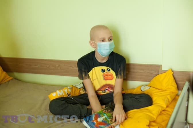 В одній із палат на ліжку сидить Максим. У день, коли Тvoemisto.tv завітало у лікарню, у хлопця був день народження. Йому виповнилося 12-ть років. Максим із мамою приїхали зі Сколівщини. Тут йому лікують нефробластому лівої нирки.