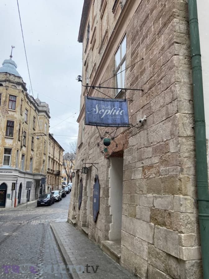 Стукаю у всім відомі сині двері в центрі Львова, на вул. Друкарській. Мені відчиняє шеф-кухар та за сумісництвом директорка закладу «Тітонька Софі» Катерина Магалюс. Всередині зовсім темно. Під час звичного графіку тут працює 11 людей на зміні. Нині ж працівників нема, бо ресторан не працює навіть на доставку. Основну страву – равликів – щодня не споживають, та й не кожен може собі дозволити їх.