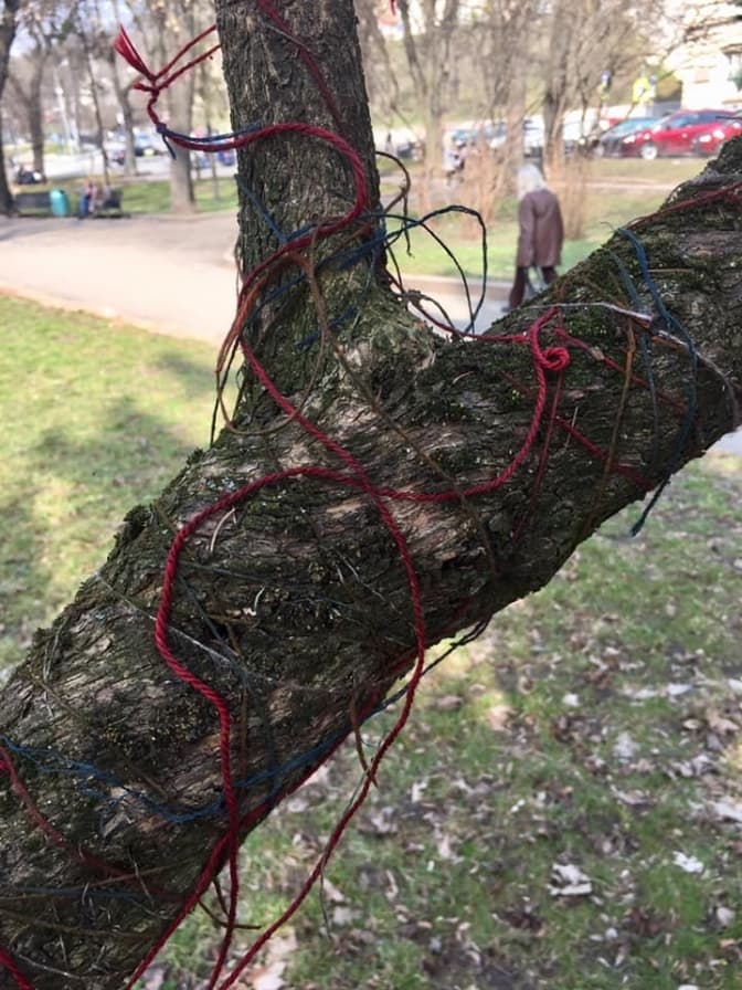 «У мене таке враження, що вони вже давно просили, аж кричали потурбуватися про них. Два бузка хтось замотав нитками, що вже врізались у кору. Це дуже неприємно дереву. Ми їх звільнили», – розповідає садівниця.