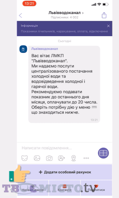 Систематично, у час коли потрібно подавати показники лічильників, на вайбер чи телеграм буде приходити повідомлення із нагадуванням. Окреме сповіщення стосується оплати.