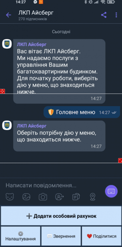 Щоб приєднатися до чат-боту комунального підприємства, що обслуговує ваш будинок, потрібно у Viber або Telegram знайти своє ЛКП, додати особові рахунки та здійснити всі налаштування, як того вимагає сервіс. Також усю необхідну інформацію можна знайти при вході в ЛКП, включно із QR-кодами, що спростять вхід у систему.