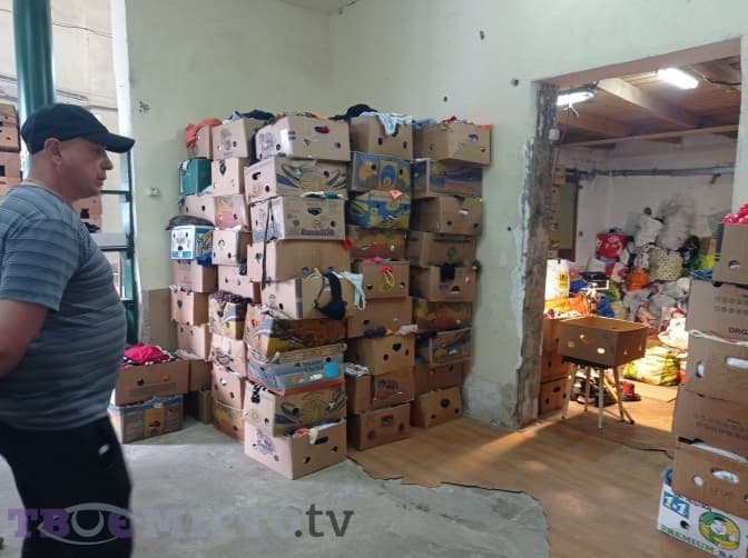 У його підпорядкуванні близько 15 чоловіків, які вивантажують мішки з автівок, висипають речі на столи та сортують. Усе відокремлюють на жіночі, чоловічі, дитячі речі та взуття. Ростислав каже, що дитячі іграшки та взуття потрапляють найгірші. Більшість просто доводиться викидати на смітник.