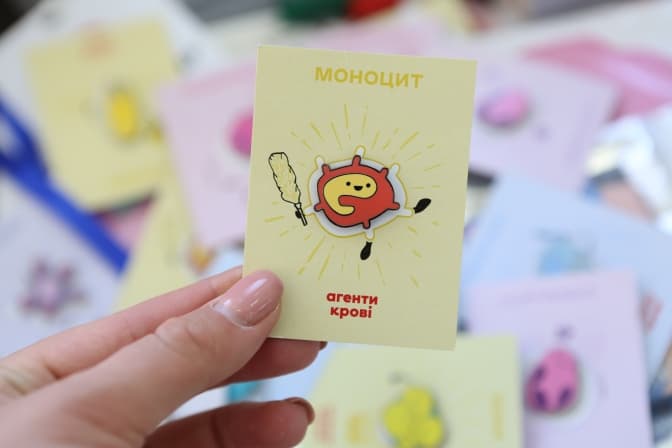 У винагороду за кожну донацію волонтери роздають донорам значки, на яких зображені компоненти крові – уся колекція містить 17 шт.