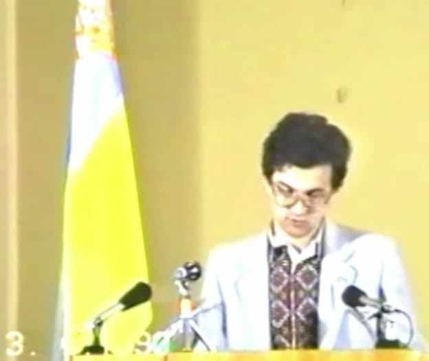 «На репліку Хмари дуже добре відповів вже покійний депутат Володимир Комар, сказавши, що це питання ми вирішуємо в межах наших повноважень, і мусимо рахуватися з тим, що є визнаний державний прапор УРСР. А вас (ред. – звернувся до Хмари) ми обрали до Верховної Ради, аби цей прапор змінили, і щоб національний український прапор став державним», – розповідає історик Гречило.