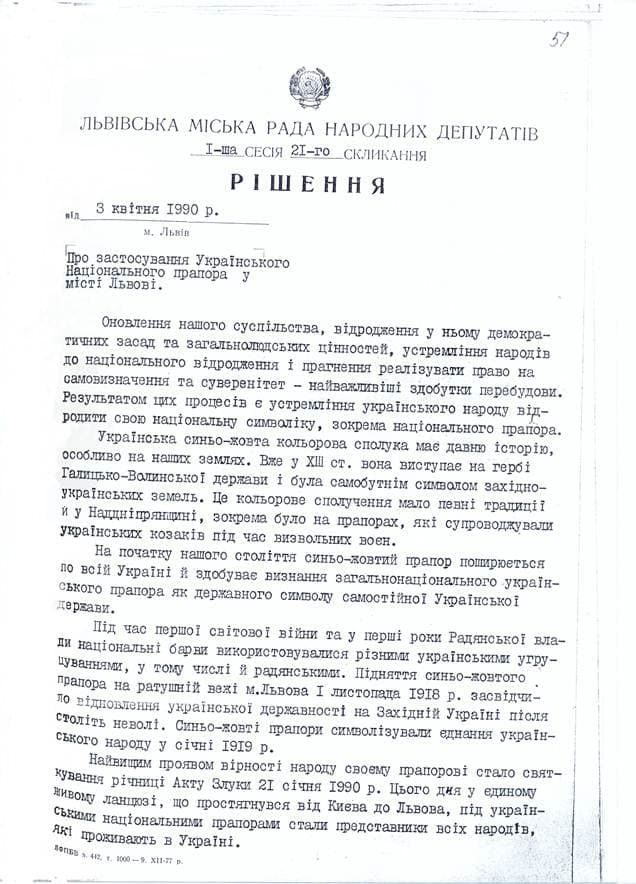 Був страх і ризик. За Львовом спостерігала вся радянська Україна. Львів трохи більше, ніж за рік до проголошення державної незалежності, одним з перших підняв синьо-жовтий прапор над міською Ратушею. 3 квітня 1990 року на головній площі міста зібралися тисячі людей.