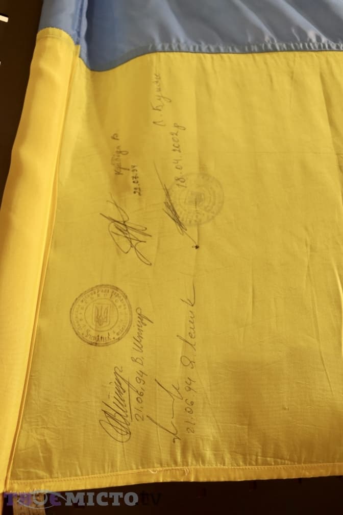 Насправді 3 квітня 1990-го року у Львівській міській раді було два синьо-жовтих прапори. Один з них, меншого розміру, депутати внесли до сесійної зали та встановили біля президії. А більший стяг підняли над вежею Ратуші.