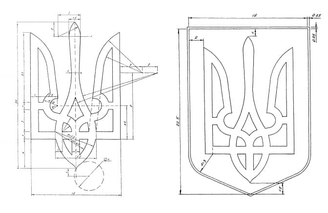Далі виникло питання щодо форми щита. Я зробив десять варіантів щита для депутатів, з якого вони обрали п’ятисторонній щит, який зараз є на всіх монетах та банконотах. Робив розбивку, технічне креслення, а хлопці мали переносити це на планшет і робити в кольорі. Планшет нам тоді держава теж не надала. Нам тоді привезли з приватної майстерні планшет метр на метр, розробили проєкт і графічну схему (чорно-білий варіант і кольоровий варіанти). Тризуб ми робили так, що він масштабований. Товщина ліній взята за умовну одиницю, і потім вже до того робилися всі радіуси, заокруглення, пропорції. І навіть, якщо подивитися в Постанову, якою герб затверджений, то там наші записи прикріплені у додатках, як технічна та схематична документація до тексту. Ми віддали цю роботу. Її потім мала розглядати Президія Верховної Ради і подавати на розгляд Верховної Ради. На Президії почалися суперечки знову щодо Великого Герба.