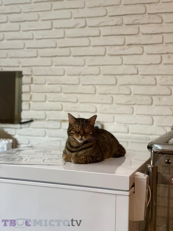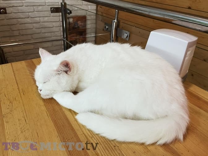 Дівчина розповіла, що загалом в закладі є 20 кішок, всі вони добре контактують з людьми і нікого не бояться, а відвідувачі сюди приходять спеціально для того, щоб контактувати з тваринами.