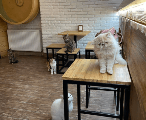 Кішок у заклад підбирають лише домашніх, щоб вони в малому віці контактували зі своїми батьками і були призвичаєні до домашніх умов. З притулків у кафе тварин немає.