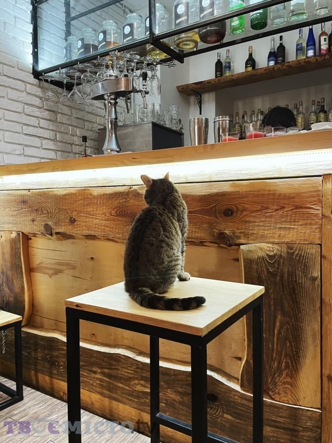 Під час перебування в закладі бачимо більше десяти кішок, усі вони були чисті. Щоправда, деякі з них лізли просто у тарілки в той час, як відвідувачі їли. Однак, як стверджують у закладі, люди сюди приходять саме для того, щоб контактувати з котами, тому тримати тварину на столі чи кріслі під час перебування у кафе – вибір кожного.