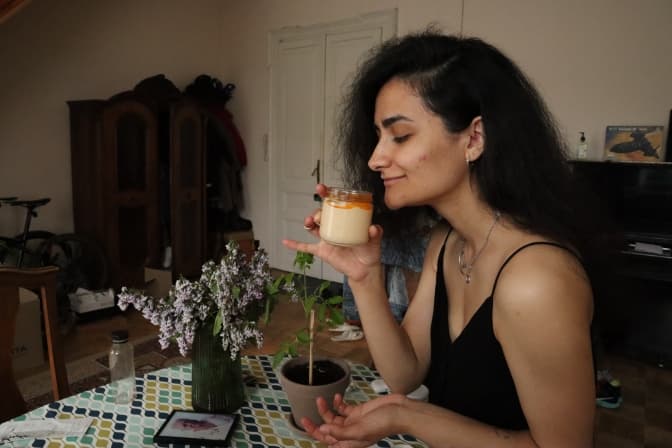 Під час першої нашої зустрічі ми з Сафі сиділи в одному з грузинських закладів, де нам принесли лаваш та хумус — як комплімент. Сафі подивилась на хумус насторожено і взялась його нюхати.