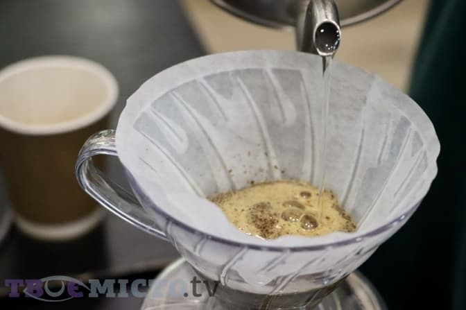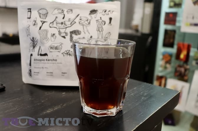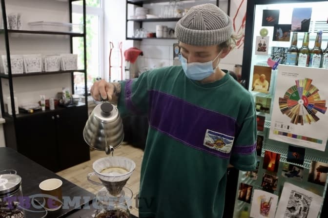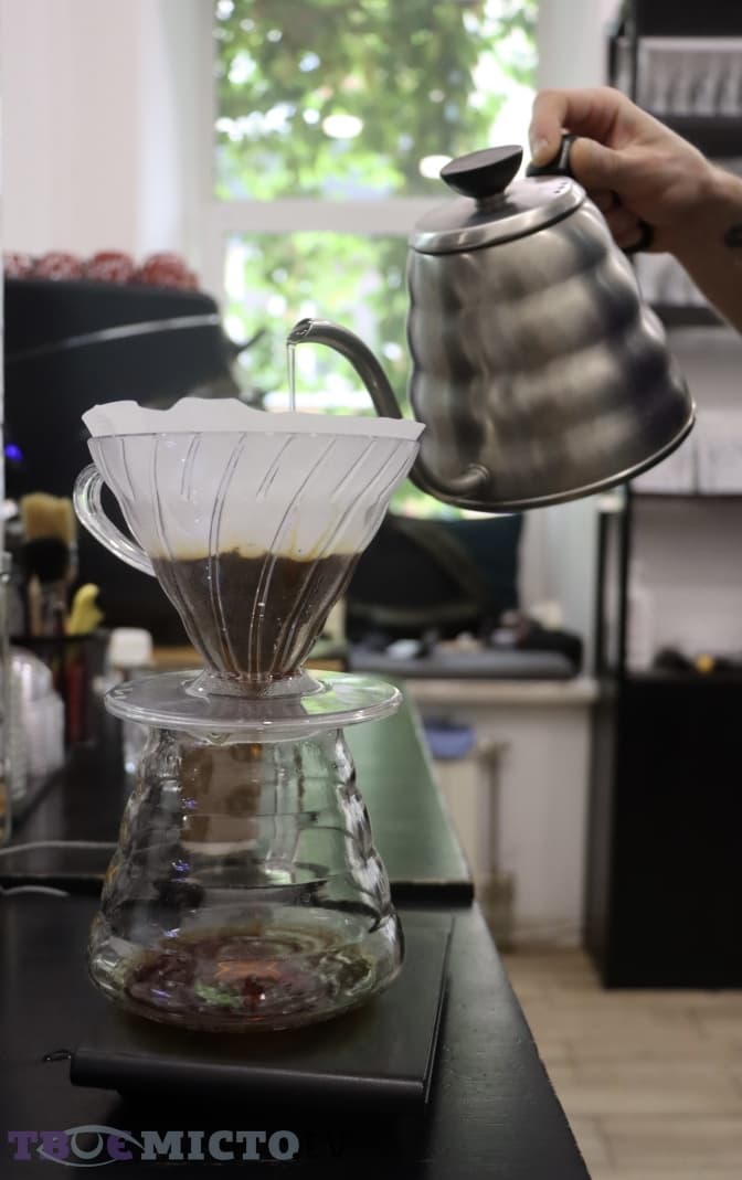 Богдан заварює мені каву з ефіопської арабіки. Каже, важливо, щоб був теплий посуд, у якому готується кава, і той, у який вона наливається. За його словами, каву, приготована у посуді V60, мають кушутвати без цукру, вершків чи будь-яких інших додатків. На смак вона виявляється дійсно менш міцною, але має насиченіший букет смаків.