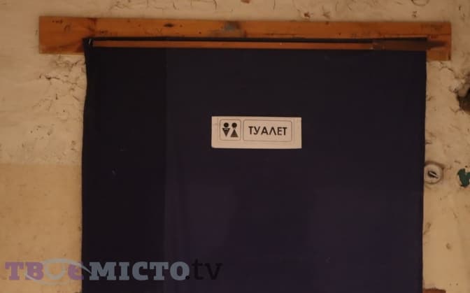Туалету саме у приміщенні укриття немає, проте він є на тому ж нульовому поверсі, але навпроти і щоб потрапити, потрібно пройти далі. Також є ніша, яка прикрита тканиною. Там міг запросто стояти унітаз, але наразі на цьому місці поставили відро.