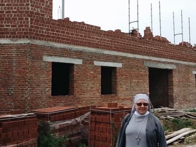 Сестра альбертинка біля будівництва комплексу