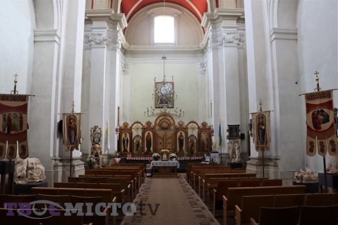 Старий костел можна побачити справа, йдучи дорогою до Високого Замку. Пройти повз і не звернути на нього увагу доволі складно. Це пам’ятка архітектури XVII століття. Костел звели італійський архітектор Джованні Баттиста Джизлені та скульптор Андреас Шванер, які надихалися римськими храмами. Він – із охристого тесаного каменю та є взірцем західної барокової архітектури. Фасад прикрашають дві колони коринфського ордеру при вході, декоративні вази у нішах, скульптури святих Йосифа і Терези, рваний бароковий фронтон. Дещо дисонують із цим два кондиціонери на фасаді, але наразі – не про костел, а про колишній монастирський комплекс. Більша його частина стоїть пусткою, хоча це теж пам’ятка архітектури.