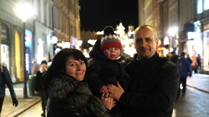 «Ми самі зі Львова і тут дуже відчувається його дух. Начебто ми полетіли з дому, але прилетіли додому. Архітектура дуже подібна до львівської, атмосфера ідентична львівській. Ми прилетіли сюди святкувати День народження нашого сина, бо він народився на Різдво. Йому виповнилося два роки, а чекали ми на нього 12 років. Ми просто переповнені емоціями, настільки свято і місто рідне, і близьке до нас», – говорять Юрій та Віра.