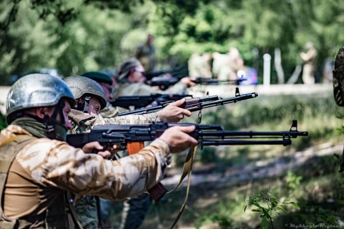 «Я мав військову кафедру в Політехніці, але не потрапив туди, бо не дав хабаря. Зараз у нас дуже активні тренування. Навіть ті, що проходили строкову службу, кажуть, що тренування в ТРО однозначно кращі. Три роки в територіальній обороні дорівнюють року служби в ЗСУ, проте мої знайомі, котрі відслужили рік на строковій службі до 2014 року, один раз тільки виїзжали на полігон стріляти, де їм дали 20 патронів і одну гранату. Решта служби була на будівництвах. Ми ж за одне тренування можемо вистріляти 60 патронів. А коли маємо тренування на кулеметах, то патрони там практично не рахують», – веде далі Михайло.