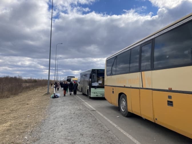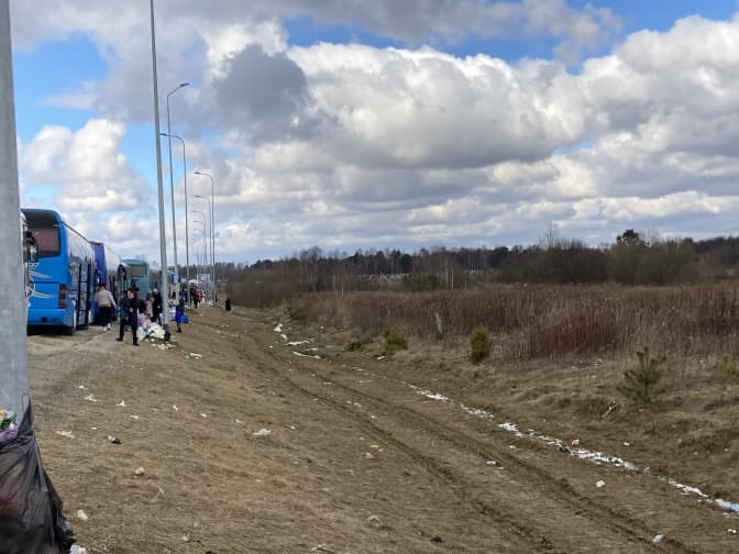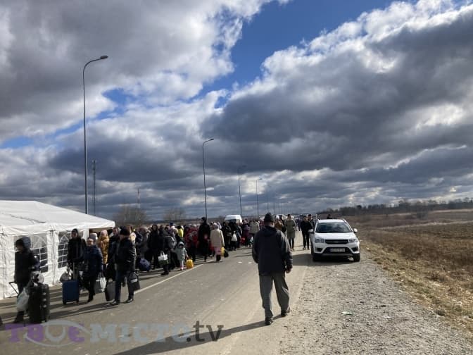 Я йду дорогою, повертаюся до свого авта повз колону автомобілів. У деяких плачуть діти, у деяких дорослі. В одних люди сплять, у других крізь запотілі вікна визирають собаки, коти. Більшість автівок замкнені. З деяких повиходила купа люду, метушаться, потягуються, щось перебирають у багажниках, розмовляють. Біля автобусів найбільше дітвори. Дехто ночував у Львові, а дехто приїхав із Харкова, Запоріжжя, Полтави, Херсона, Дніпра.