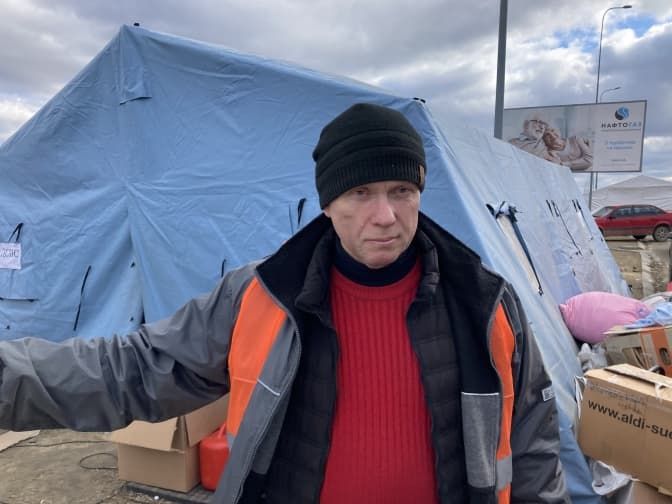 «Нарешті аж тепер щось вдається впорядковувати. Був страшний хаос, не знали, що з тим робити. Поляки передають багато «гуманітарки», всякої-різної. З нашої громади люди також дають все, що можуть. Орендуємо такі намети за гроші. Сьогодні мають привезти ще один, більший. Люди привозять генератори, проводять світло, обігрів. Нині людей трохи менше. Але бачите, що робиться у Львові? Там сотні тисяч людей, і всі вони приїдуть сюди. Так, є поїзди, але треба розподіляти людей по всіх пунктах пропуску, бо буде колапс», – вважає Ігор Грабовський.