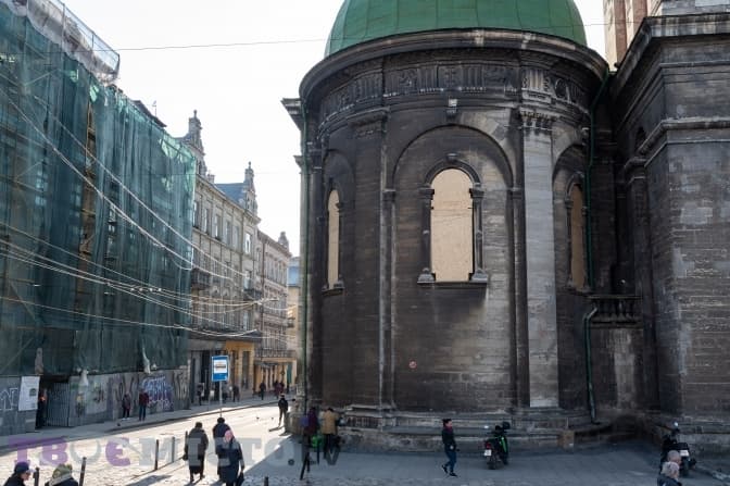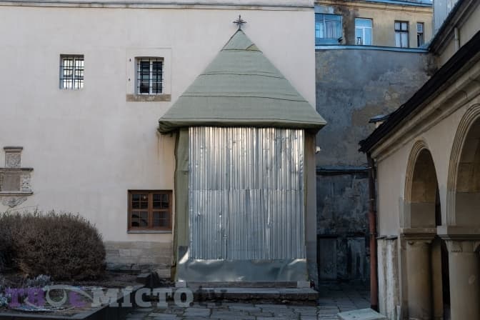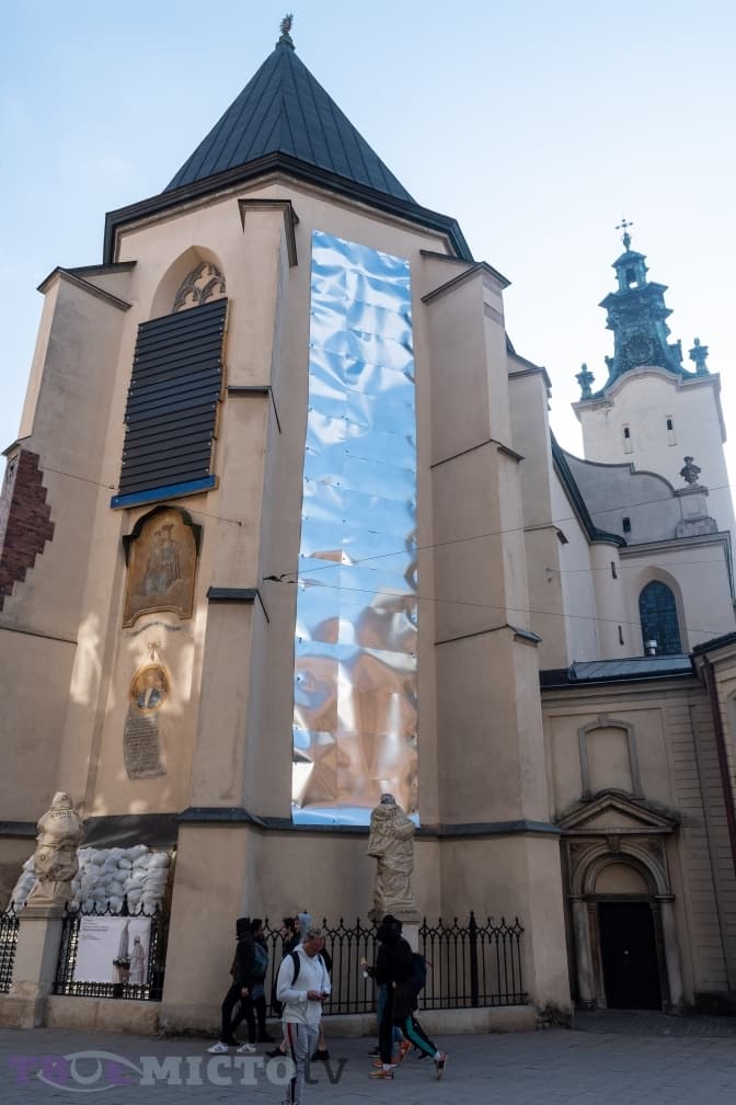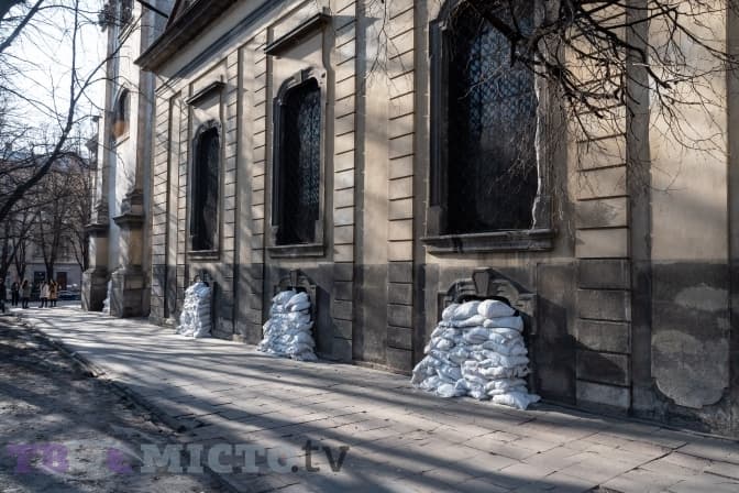 «Найперше ми працювали з вітражами. Уже закрили їх в Успенській церкві та в Катедральному костелі. Відтак почали захищати скульптури: обмотали їх спеціальною плівкою, ущільнили упаковання мінеральною ватою. Якщо, не дай Боже, потрапить якийсь уламок унаслідок вибуху і пошкодить скульптуру, то вона все одно не розпадеться на частини, не доведеться шукати фрагментів серед інших уламків і легше буде реставрувати. На деяких будівлях, повністю вкритих різьбою, також є захист – спеціальні риштовання. А ще ми забезпечили церкви і костел вогнегасниками, бо в них є дерев’яні об’єкти – іконостаси, вівтарі», – пояснює Андрій Салюк.