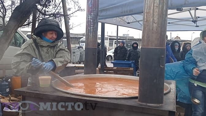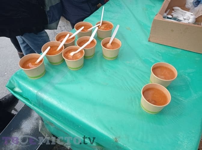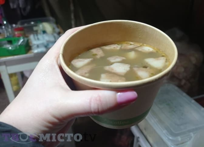 Як каже ресторатор, для приготування страв у казані спочатку використовували продукти з ресторану, а далі до збору долучилися волонтери та небайдужі люди. У планах було одне – готувати саме рідкі гарячі страви.