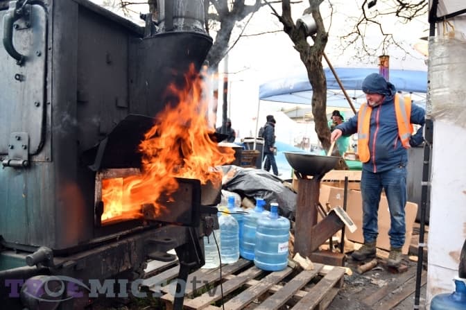 Польова кухня на Львівському залізничному вокзалі працює за будь-якої погоди. Тут не перестають готувати, нарізати, роздавати. Зі слів Андрія Німця, кухні завжди потрібні овочі: картопля, цибуля, морква, буряки, капуста, а також мֹ’ясо – сире або копчене, дрова і вода.