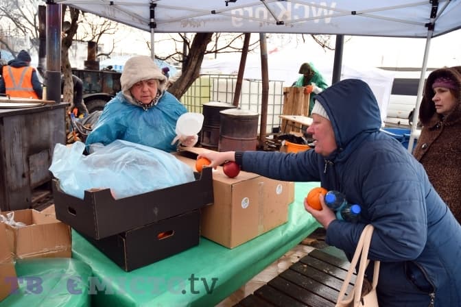 М’ясо, овочі, крупи польова кухня бере на волонтерському складі на тому ж вокзалі. А ще їх приносять небайдужі люди: хтось мішок картоплі чи моркви, хтось сумку буряків і цибулі.
