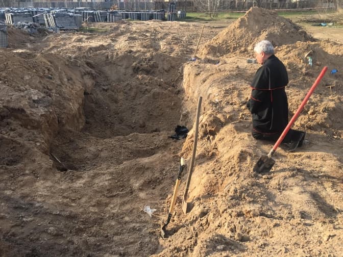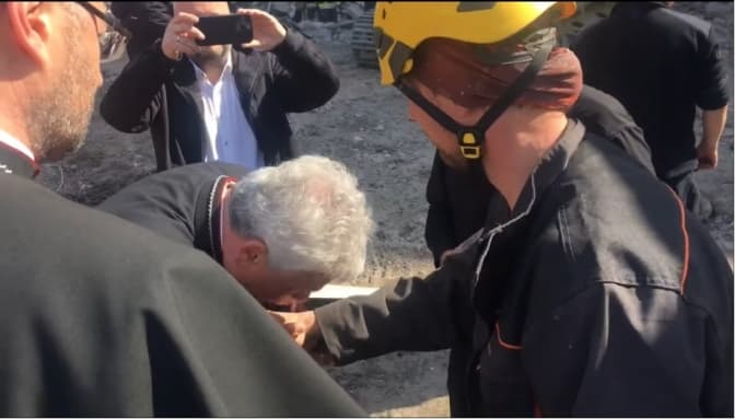 Також кардинал поцілував руку працівнику ДСНС, який витягнув із-під завалів у Бородянці Святе Письмо та попросив передати його до Ватикану.