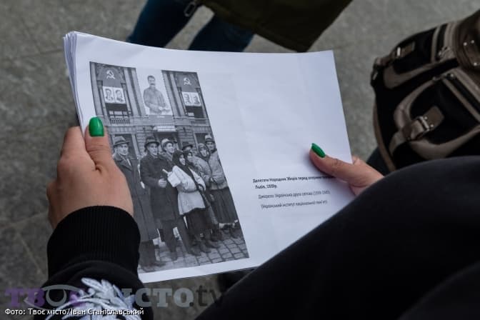 У жовтні 1939 року біля оперного театру скликали так звані народні збори. Це те саме, що сьогодні проводять окупанти на східних теренах України – псевдореферендуми. Робили постановочні фото із «селянами», які начебто хочуть стати громадянами радянської держави. І на цьому так званому референдумі проголосили кілька законів. Зокрема, закон, який передбачав націоналізацію, радянізацію і колективізацію. Згідно з ним, усе приватне майно мало б перейти на баланс держави. Той, хто чинить спротив, є злочинцем, а отже, його можна заарештувати і депортувати в Сибір.