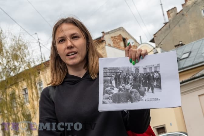 Нацисти ж називають євреїв комуністами. Наслідком цього став прикрий етап історії – протягом трьох днів у Львові в липні 1941 року відбувся так званий погром. Українці і поляки, які скоювали напади на євреїв на вулицях Львова, чатували на них у їхніх помешканнях, тягли до в’язниць, де змушували викопувати і діставати залишки вбитих там і здійснювати перепоховання на Янівському цвинтарі. Цьому підігравала нацистська окупаційна влада. Серед методів приниження єврейського населення був такий, що змушував чистити бруківку.