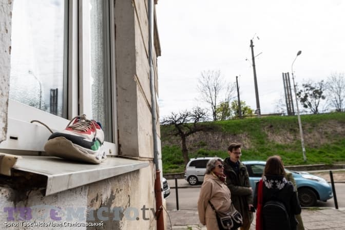 Гідка вказує на будинок на території колишнього гетто, де розміщувався Юденрат, вул. Кушевича, 5