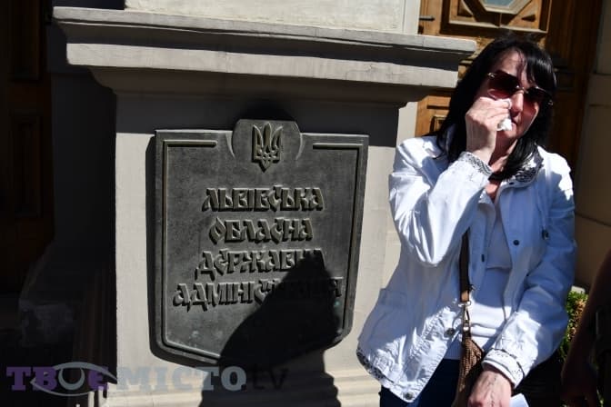 Жінки, сестри, матері і дівчата тероборонівців зібралися біля Львівської обласної військової адміністрації. Вони підготували колективне звернення до голови ЛОВА Максима Козицького, що їхніх чоловіків відправили на завдання у зону бойових дій Луганської і Донецької областей на нульову і першу лінії.
